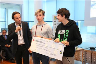 Bildungslandesrat Philipp Achammer und die Mitgliedern der Jury haben heute (4. Mai) die Siegerprojekte prämiert und den Schulklassen ihre Preise übergeben. Landesrat Achammer stellte in seinen Grußworten den Wasserstoff als erneuerbare Energiequelle bzw. als "Kohle der Zukunft" in den Mittelpunkt. "Dieser Wettbewerb zeigt, dass großes Interesse am Thema Wasserstoff und nachhaltige Technologie, aber auch an naturwissenschaftlichen Fächern besteht", unterstrich Achammer und drückte den Schülern und Lehrern sein Kompliment für die Kreativität aus, die sie mit den Projekten bewiesen haben. Auch die Mitglieder der Jury zeigten sich vom kreativen und wissenschaftlichen Potential der Schulklassen begeistert.