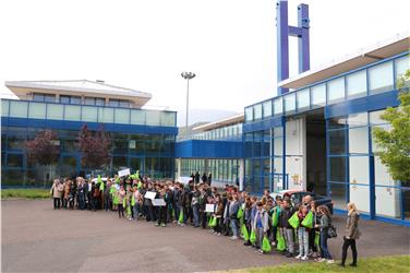 - Die Schulklassen stellten bei der Preisübergabe auch ihre Projekte vor – hier die Schüler der Mittelschule Glurns. Foto: LPA/me [JPG 20 KB]