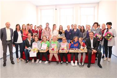 - Gruppenbild der Teilnehmerinnen mit Landesrat Philipp Achammer und Schulführungskräften sowie Jurymitgliedern. Foto: LPA/me [JPG 20 KB]