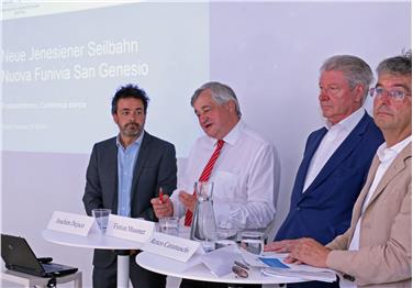- Präsentierten das Projekt für die neue Seilbahn Bozen-Jenesien: STA-Direktor Dejaco, LR Mussner, BM Caramaschi und BM Romen (FOTO: Roman Clara - www.provinz.bz.it/news) [JPG 16 KB]