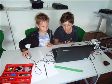 Mit viel Interesse und Forschergeist gingen die Jungen und Mädchen im "Kreativen Forscherlabor" ans Werk. Sie überprüften Stoffe auf ihre Eigenschaften und wendeten dabei wichtige Labormethoden an. Sie mikroskopierten, filtrierten, sortierten, experimentierten und befassten sich damit, welche Seifenlösung die schönsten Seifenblasen erzeugte. Für kleine Techniker ging beim Workshop "Technik trifft Informatik" ein Traum in Erfüllung: Alle Teilnehmer konnte ihr eigenes selbst fahrendes Fahrzeug programmieren. Vom Design bis zur Fernbedienung – alles entwarfen und bauten die Jugendlichen selbst. Leonie war begeistert: "Das hier ist besser als Kino und Fernsehen zusammen!"
