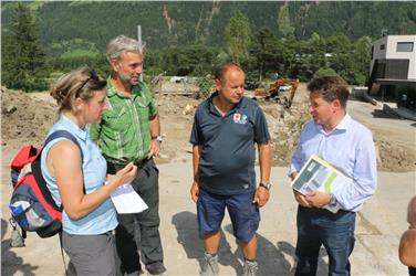 Beim Lokalaugenschein mit Bürgermeister Christian Gartner, Gemeindevertretern und Anrainern wurde festgestellt, dass die Aufräumarbeiten der Wildbachverbauung am Gaiser Graben und am Neuhauserbach sehr gut voranschreiten. Zusätzliche bauliche Schutzmaßnahmen werden bereits angedacht. Landesrat Schuler hat die Gelegenheit genutzt, sich vor Ort ein Bild von der Situation zu verschaffen und mit den Bewohnern und Anrainern der drei betroffenen Häuser am Neuhauserbach zu reden: "In den kommenden Tagen", erklärt er, "werden Gemeinde- und Behördenvertretern gemeinsam nach einer Lösung suchen, um den von den Unwetterschäden Betroffenen zu helfen. Es soll das Möglichste unternommen werden, um die Sicherheit zu gewährleisten. Die Koordinierung der weiteren Schritte obliegt der Gemeinde."