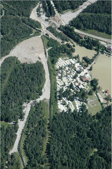 In den vergangenen Jahren haben sich die Bauwerke der Wildbachverbauung oberhalb des Campingplatzes am Toblacher See bereits mehrmals bewährt. So auch während der heftigen Unwetter am vergangenen Wochenende in Toblach. "Die Schutzbauten beim Campingplatz haben an die 30.000 Kubikmeter Material aufgehalten", berichtet der Direktor der Agentur für Bevölkerungsschutz Rudolf Pollinger. Sobald das Wasser aus dem Rückhaltebecken abgelaufen und das angeschwemmte Material transportfähig ist, wird mit der Räumung des Beckens begonnen.