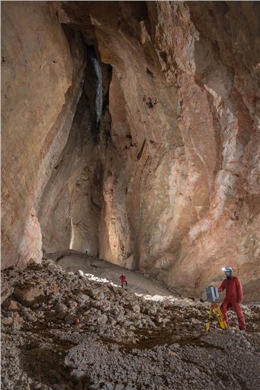 Dort stellt er um 21.15 Uhr im Kulturhaus "J. B. Rinna" die kürzlich entdeckte Cenote-Höhle zwischen der Conturines- und der Lavarellaspitze im Naturpark Fanes-Sennes-Prags vor. Sie ist die tiefste und imposanteste Höhle der Dolomiten und seit 2010 Gegenstand eines Forschungsprojekts unter Sauros Leitung. Die speläologische Erkundung begann bereits 1994, nachdem sich ein kleiner See auf knapp 3000 Metern Meereshöhe plötzlich entleert hatte. Bemerkt wurde zu Beginn auf dem Grund der Mulde nur ein Hohlraum im Eis. Mehrere Expeditionen endeten jedoch wegen technischer und klimatischer Schwierigkeiten ergebnislos. Im Frühherbst 2010 dann der Durchbruch: Eine neue Expedition schaffte es, in die Höhle abzusteigen und den riesigen Schacht zu erkunden, der sich unter der Hauptablagerung aus Eis 160 Meter in die Tiefe erstreckt. Die Erkundung endete in einem riesigen Saal (Paolo-Verico-Abgrund), bis dato flächen- und volumenmäßig der größte unterirdische Saal der Dolomiten.