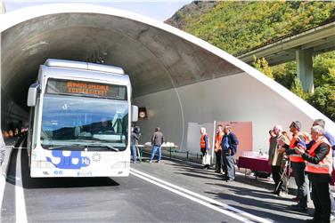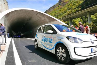 - Als erste Fahrzeuge rollten Elektrofahrzeuge und ein Wasserstoff-Bus durch den neuen Tunnel (FOTO: LPA/Roman Clara) [JPG 23 KB]