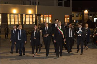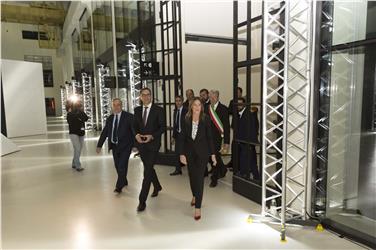 Nach dem Rundgang durch die Räumlichkeiten, einem Interview-Termin mit Landeshauptmann Arno Kompatscher, Bürgermeister Renzo Caramaschi, BLS-Präsidentin Helga Thaler Ausserhofer und IDM-Präsident Hansi Pichler, ist Unterstaatsekretärin Maria Elena Boschi eingetroffen.