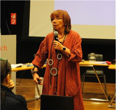 - Schule prägt Einstellungen und Haltungen. Wenn sich die Gesellschaft ändern soll, müsse sich auch die Bildung ändern, forderte Referentin Margret Rasfeld - Foto: Deutsches Bildungsressort [JPG 21 KB]