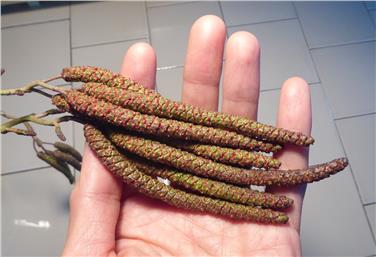 Rinnt im Winter die Nase, denkt man üblicherweise an eine Erkältung. Die Ursache kann aber auch eine Pollenallergie sein: "Tatsächlich gibt es eine Baumart, die bereits zu Jahresbeginn ihre Pollen ausschüttet: die Purpur-Erle (Alnus spaethii)", erklären die Experten des Polleninformationsdienstes der Landesumweltagentur. Dabei handelt es sich um eine ortsfremde Art, hervorgegangen aus der Kreuzung der japanischen mit der kaukasischen Erle. Sie kommt in Südtirol natürlich nicht vor, gilt aber wegen ihrer schönen Blätter und des schnellen Wachstums als beliebter Stadtbaum. Sie ist außerdem gut ans Stadtklima angepasst und witterungsresistent. Einige Exemplare der Purpur-Erle finden sich auch in Bozen.