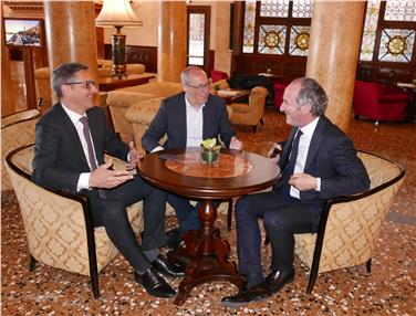 Landeshauptmann Arno Kompatscher ist heute Mittag (26. März) in Venedig mit dem Präsidenten der Region Luca Zaia zusammengetroffen. Mit dabei war auch der Trentiner Landeshauptmann Ugo Rossi. Die drei Regierungschefs erörterten im Rahmen eines längeren Gesprächs zahlreiche Themen und sprachen über verschiedene geplante und mögliche Kooperationsprojekte, sowohl im Bereich der Infrastruktur, der Mobilität, der Wasserversorgung, des Schutzes der Berggebiete sowie im Sport.