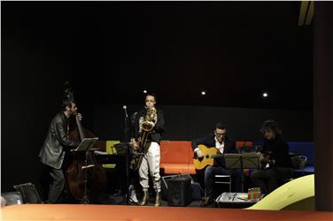 - 20-Jahr-Feier Archäologiemuseum musikalisch gestaltet: Saxophonistin Helga Plankensteiner und Band. Foto: LPA/mac [JPG 12 KB]