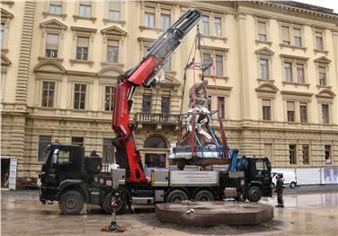 - Am Nachmittag wurde der Laurin-Brunnen abtransportiert (Foto: LPA/rc) [JPG 26 KB]