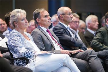 - Um die Bedeutung der alpinen Wasserkraft und deren Zukunftsperspektiven ging es auch bei der anschließenden Podiumsdiskussion. Foto: Staatskanzlei Graubünden [JPG 16 KB]