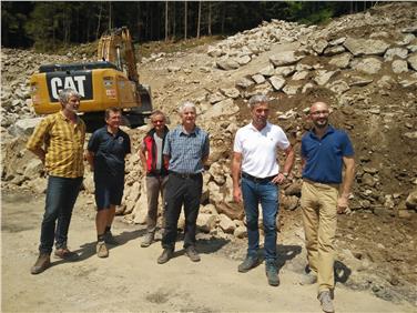 Besichtigt wurde auch die Baustelle an der Rienz in Welsberg, wo an einer Verbauung zum Schutz der Handwerkerzone Welsberg gearbeitet wird: Der Gefahrenzonenplan der Gemeinde Welsberg-Taisten zeigt auf, dass die Handwerkerzone der Überflutungsgefahr durch die Rienz ausgesetzt ist. Deshalb investiert die Agentur für Bevölkerungsschutz rund 870.000 Euro in ihren Schutz. Im Zuge der Arbeiten errichten Bernhard Leimgruber und sein Bautrupp eine rund 260 Meter lange Uferschutzmauer. Um ein bergseitiges Eindringen von Wasser in die Handwerkerzone zu unterbinden und um gleichzeitig den Eisenbahndamm zu schützen, wird auf einer Länge von weiteren 150 Metern ein Schutzdamm gebaut, der mit Hilfe von Zyklopensteinen gegen Erosion abgesichert wird. Im Fokus der Maßnahme steht nicht nur der Hochwasserschutz, sondern auch die ökologische Aufwertung eines Teilabschnittes der Rienz, die auf einer Länge von rund 400 Metern aufgeweitet und neugestaltet werden soll. Die Kosten für diese zusätzlichen Arbeiten belaufen sich auf 24.000 Euro; die Finanzierung erfolgt über eine Ausgleichsmaßnahme des Kraftwerks Hydros Bruneck.