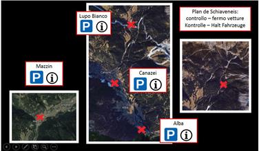 - #dolomitesvives am Sellajoch: Info- und Kontrollpunkte auf Trentiner Seite (Grafik: LPA) [JPG 20 KB]