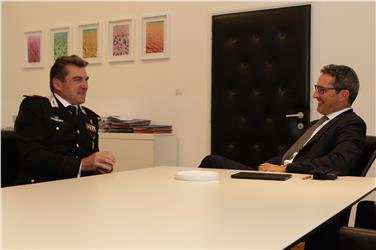 Carabinieri-Kommandant Mennitti verlässt im kommenden Juli Südtirol. Heute hat er Landeshauptmann Kompatscher seinen Abschiedsbesuch abgestattet.
