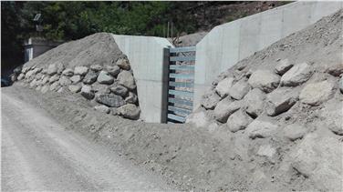 - Die Räumung des Rückhaltebeckens erfolgt bei Bedarf über die drei Meter breite Öffnung in der Betonsperre. Foto: LPA/Amt für Wildbach- und Lawinenverbauung West [JPG 17 KB]