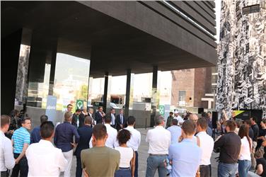 - Übergabe der E-Autos an die Betriebe im NOI Techpark in Bozen 60 Betriebe können die emmissionsfreien Fahrzeuge in den kommenden Wochen testen (FOTO: LPA/Roman Clara) [JPG 23 KB]