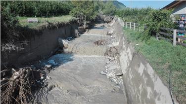 Als letzte größere Maßnahme wurden zwischen 2004 und 2008 die alten Ufermauern und Sperren am Schwemmkegel bis zur Mündung in die Etsch instandgesetzt. "Wie sich vorgestern gezeigt hat, hat sich der Aufwand gelohnt", unterstreicht Amtsdirektor Spagnolo: "Durch die Summe der Maßnahmen konnten die Ausuferung des Baches am Schwemmkegel und damit Schäden im Siedlungsbereich verhindert werden."