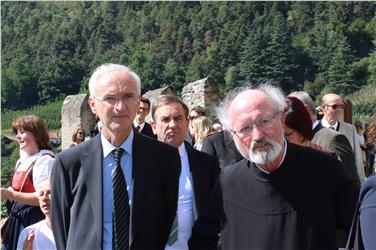 - Der Pfarrer Robert Gamper (re.) beim "landesüblichen Empfang". Foto: LPA/mgp [JPG 23 KB]