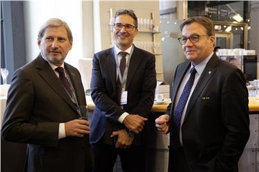 LH Kompatscher (12.v.l.) beim Jahresforum der EUSALP mit Kommissar Hahn (14.v.l.) und LH Platter (17.v.l.) - Foto: Land Tirol