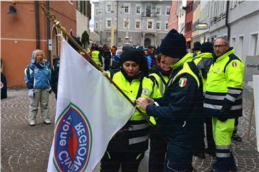 - Südtiroler Zivilschützer bei der Eröffnung der Zivilschutz-Skimeisterschaft am Rathausplatz in Bruneck. Foto. LPA/Peter Daldos [JPG 22 KB]