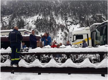 Die Brennerautobahn ist auf der Nordspur zwischen Sterzing und Brenner für alle Fahrzeuge frei befahrbar. Bei der Einfahrt Bozen-Süd kann jedoch weiterhin nicht eingefahren werden. Die Südspur ist frei befahrbar und wird auch von den Schwerfahrzeugen genutzt, die Richtung Norden unterwegs sind. Die Brennerautobahngesellschaft ist darum bemüht, auch die Nordspur frei zu bekommen. Der Schwerverkehr wird Schritt für Schritt auch Richtung Norden umgeleitet. Die Situation wurde durch den Abgang einer Lawine am Brenner verschärft.