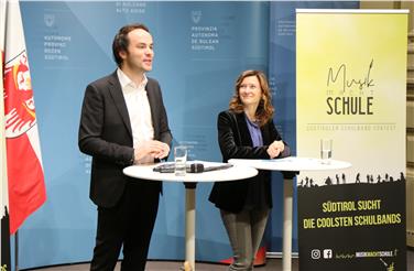Landesrat Achammer und Landesschuldirektorin Falkensteiner bei der heutigen Vorstellung von "Musik macht Schule" - Foto: LPA/Peter Natter