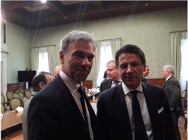 - Mit Vertretern anderer Regionen hat LH-Stellvertreter Schuler (li.) heute mit Ministerpräsident Conte (re.) über die Zuweisung der Finanzmittel nach den Unwetterschäden von Ende Oktober verhandelt. Foto: LPA/Katharina Tasser [JPG 17 KB]