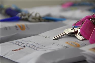 LRin Deeg kürzlich bei der Schlüsselübergabe für Mietwohnungen des WOBI in Oberbozen