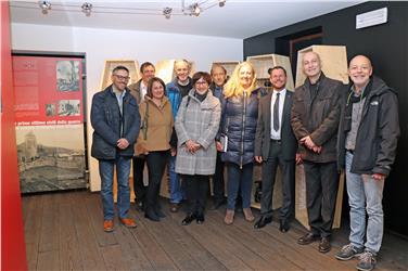 - Paolaz, Hofer, Chiocchetti, Zom, Trenti, L. Castellan, Carbonari, Ass. Vallazza, Zaiga y F. Castellan im Dokumentationszentrum (FOTO: LPA/Angelika Schrott) [JPG 20 KB]