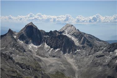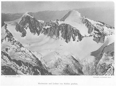 - Rückzug der Gletscher: Die Gipfel der Hochweise und des Lodners in der Texelgruppe (von Norden gesehen) um 1880... [JPG 21 KB]