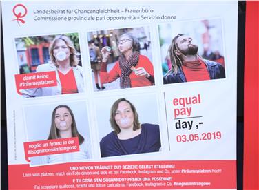 - Der 9. Südtiroler Equal Pay Day wird von 63 Organisationen unterstützt - heute wurden die Aktionen in Bozen vorgestellt. Foto: LPA/Nicole Abler [JPG 23 KB]