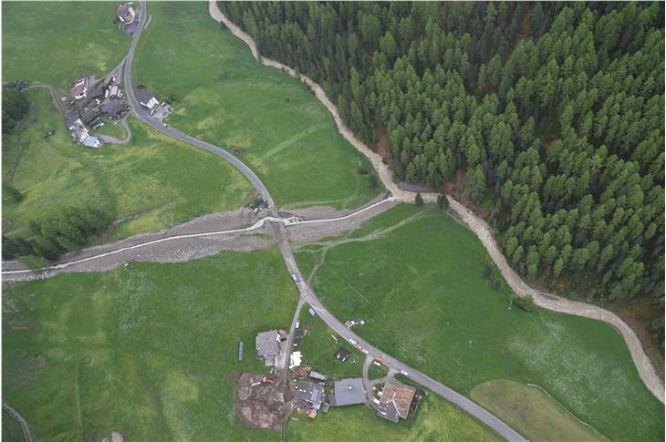 Die Freiwillige Feuerwehr hat die Lage beobachtet, Bevölkerungsschutz und Straßendienst mit Bagger und Lastkraftwagen haben alles daran gesetzt, die Landesstraße innerhalb heute (13. Juni) vormittag für den Verkehr freizugeben und das Bachbett von den Geröllmassen zu räumen.