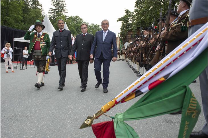 - Jean-Claude Juncker inmitten der Landeshauptleute von Südtirol, Arno Kompatscher (l.), und Tirol, Günther Platter (r.) - Foto: Land Tirol/Gerhard Berger [JPG 53 KB]