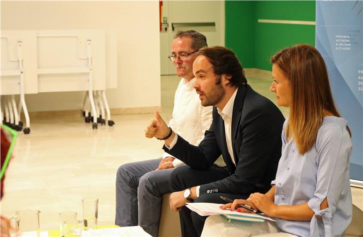 Zum Auftakt des Bildungsjahres 2019/20 hat der Landesrat für Deutsche Bildung, Philipp Achammer, gemeinsam mit Bildungsdirektor Gustav Tschenett und Landesschuldirektorin Sigrun Falkensteiner heute (9. September) in den Außensitz der Wirtschaftsfachoberschule "Heinrich Kunter" in Bozen in Anwesenheit zahlreicher Schüler und Professoren sowie des neuen Direktors Ralf Troger zu einem Pressegespräch geladen. "Im Unterschied zu den vergangenen Jahren bringt das soeben angelaufene Schuljahr keine grundlegenden Änderungen", eröffnete der Landesrat das Gespräch, "unsere Aufgabe ist es aber, angesichts der Veränderungen in Gesellschaft und Schule, die bestmöglichen Rahmenbedingungen für Lernen und Lehren zu schaffen."