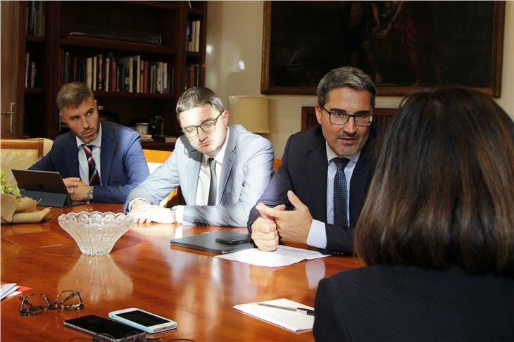 - Ministerin De Micheli beim ersten Treffen mit den Landeshauptleuten Kompatscher und Fugatti (Foto: LPA/Michele Bolognini) [JPG 38 KB]