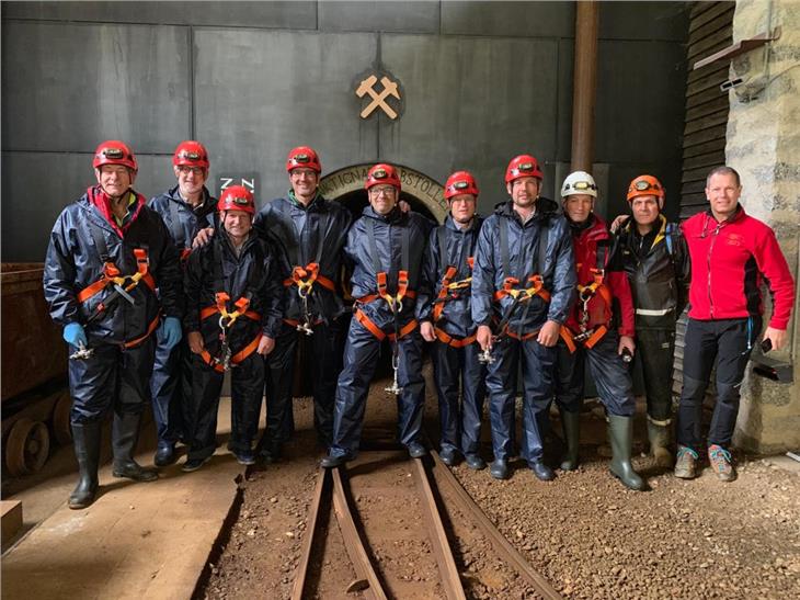 Die gegenwärtigen Anliegen und die zukünftigen Vorhaben der Gemeinden standen im Zentrum der Aussprache zwischen den fünf Bürgermeistern des Tauferer Ahrntals, Robert Alexander Steger, Bürgermeister von Prettau, Christian Gartner, Bürgermeister von Gais, Sigfried Steinmair, Bürgermeister von Sand in Taufers, Paul Niederbrunner, Bürgermeister von Mühlwald, und Helmut Klammer, Bürgermeister der Gemeinde Ahrntal mit Landeshauptmann und Gemeindenlandesrat Arno Kompatscher und Mobilitätslandesrat Daniel Alfreider am Samstag (5. Oktober) im neuen Rathaus von Prettau und bei einer Begehung des St. Nikolausstollens im Bergwerk in Prettau.