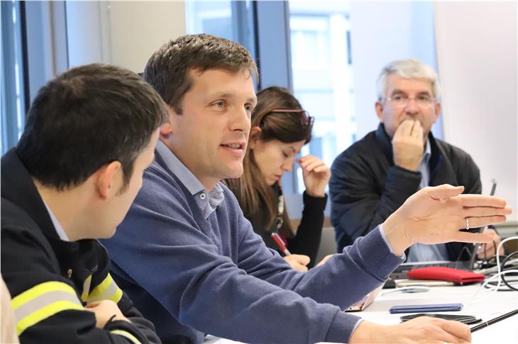- (v.li.) Doris Niederjaufner (Bereitschaftsdienst Zivilschutz), Dieter Peterlin (Landeswetterdienst), Angelika Aichner (Landesforstabteilung), Andrea Lazzarotto (stv. Kommandant Berufsfeuerwehr), Sicher (Abt. Straßendienst). (Foto: LPA/Maja Clara) [JPG 57 KB]