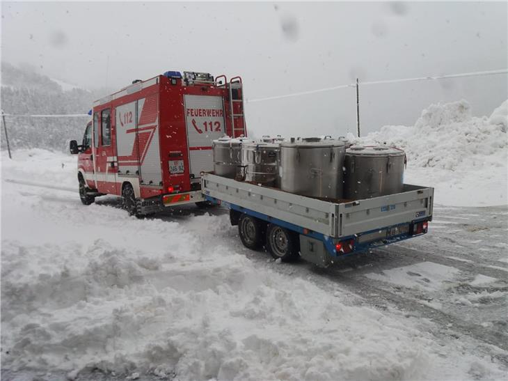 - Die Feuerwehr hilft auch beim Milchtransport, im Bild in Afers. (Foto: LPA/Freiwillige Feuerwehr Afers) [JPG 48 KB]