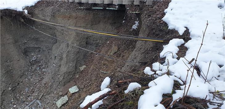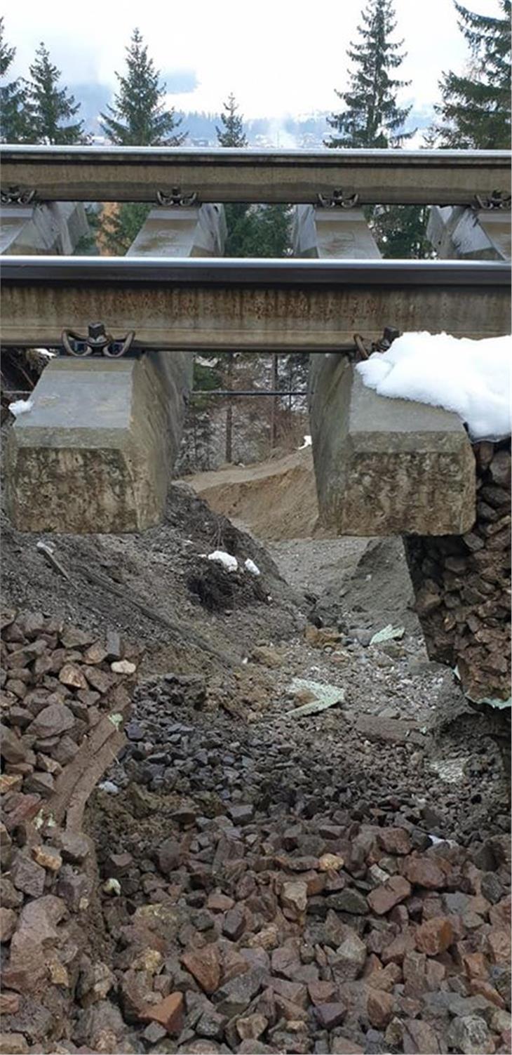 - Kabel und Gleise der Bahn liegen an der Abbruchstelle in Oberolang frei. (Foto: LPA) Kabel und Gleise der Bahn liegen an der Abbruchstelle in Oberolang frei. (Foto: LPA) [JPG 62 KB]