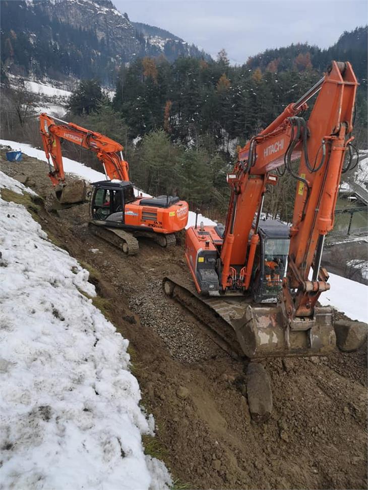 - Bagger im Einsatz für die Stabilisierung des Hangs an der Pustertaler Staatsstraße am Kniepass. (Foto: LPA) [JPG 126 KB]