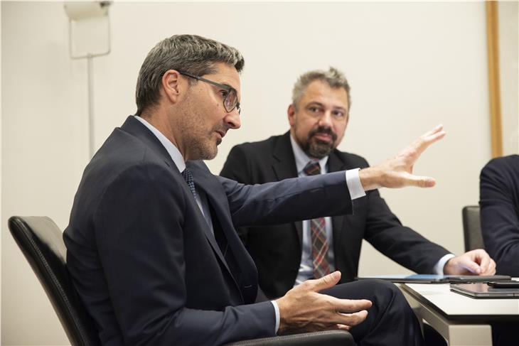 Beim Treffen mit Generaldirektor Alexander Steiner und den Verantwortlichen der Landesabteilung Finanzen mit Direktor Giulio Lazzara an der Spitze waren die Sekretäre der Gewerkschaften Michele Buonerba (SGB/CISL), Toni Serafini (UIL/SGK) und Cristina Masera (CGIL/AGB) sowie die Gewerkschaftsvertreter Christian Troger (UIL/SGK) und Alfred Ebner (CGIL/ASB) mit dabei.