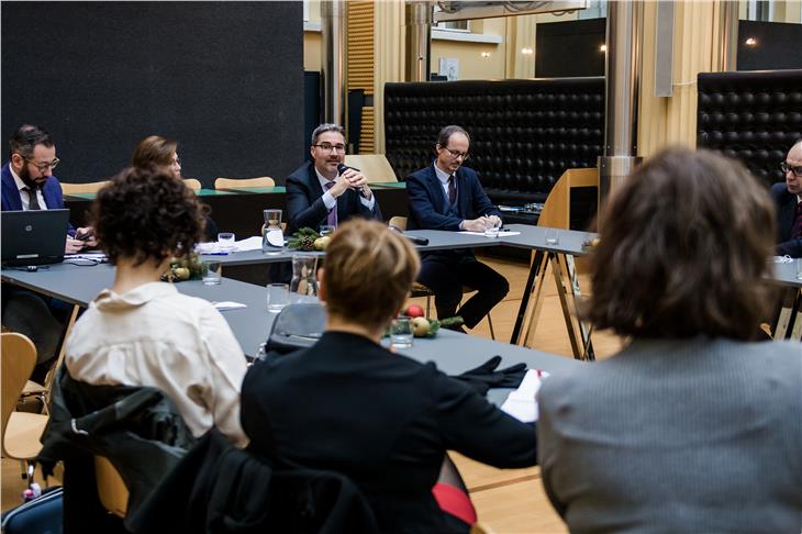 - Ob Brennerautobahn, Autonomie und Gesundheit oder Wolf: Die Medienvertreter stellten dem Landeshauptmann Fragen aus verschiedensten Bereichen. (Foto: LPA/Claudia Corrent) [JPG 74 KB]