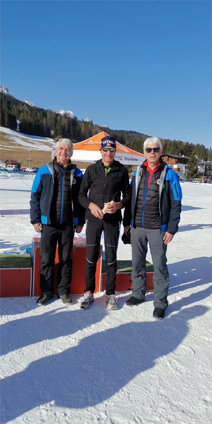 - Gratulation für sportliche Leistung: Agenturdirektor Rudolf Pollinger (li.) mit Langlauf-Drittplatziertem Paul Egger (Mitte), rechts Luis Bergamo von der Agentur für Bevölkerungsschutz (Foto: LPA/Agentur für Bevölkerungsschutz) [JPG 130 KB]