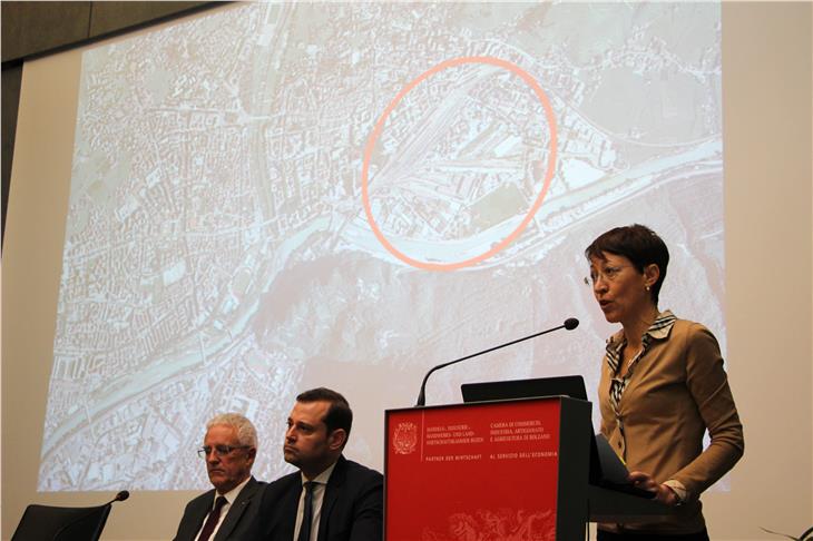 Die Vorbereitungen für das umfassende Entwicklungsprojekt für das Bahnhofsareal in Bozen sind einen Schritt weiter. Am Sitz der Handelskammer in Bozen fand heute Vormittag (26. Februar) in Anwesenheit von Spitzenvertretern des Landes Südtirol, der Gemeinde Bozen, der Gesellschaft ARBO (Areal Bozen ABZ AG) und der italienischen Eisenbahngesellschaft die Roadshow, also die öffentliche Präsentation statt, mit der der sogenannte Markttest abgeschlossen wird.