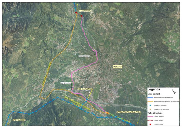 Die Arbeiten werden erst durch den Bau der Unterfahrung von Meran und des Küchelbergtunnels möglich. So kann die 132kV-Hochspannungsleitung in die neue Nord-West-Umfahrung von Meran verlegt werden. Ulrich Gamper, Bürgermeister von Algund, hebt die Bedeutung des Projekts für das Einzugsgebiet hervor: "Die Verlegung der Hochspannungsleitungen betrifft den gesamten Bezirk und wird von der Bevölkerung vollends mitgetragen".