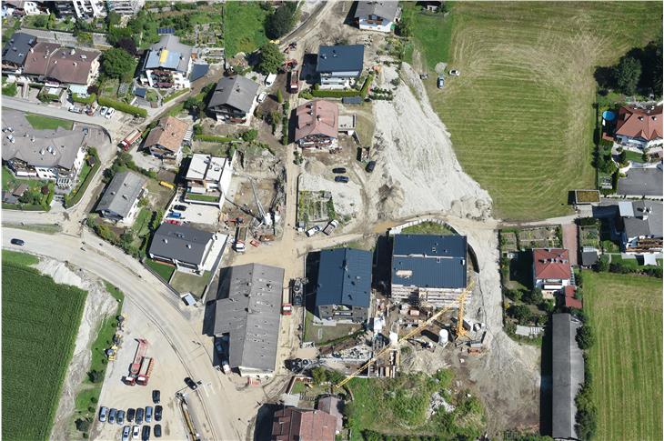 Die Mure, die am Dienstag nach 20.30 Uhr im oberen Bereich des Ortszentrums von Obervintl abgegangen war und sich zwischen den Häusern bis zur Kirche gewälzt hatte, umfasst schätzungsweise 2000 Kubikmeter, erläutert Caterina Ghiraldo, stellvertretende Direktorin des Amtes für Wildbach- und Lawinenverbauung Ost in der Agentur für Bevölkerungsschutz nach dem Lokalaugenschein.