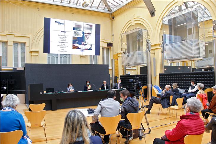Einen praktischen Input aus Südtirol boten Brigtte Abram und Paul Sanin vom KVW-Projekt Senior Online. Dabei unterstützen und beraten Senioren interessierte ältere Menschen im Bereich der neuen Medien. Projektleiterin Abram betonte, dass es vielfach darum gehe, Ängste zu nehmen und dadurch Menschen einzubinden: "Unsere derzeit 30 Senioren-Online-Coaches sind Unterstützer, Motivatoren, Mutmacher!". Einer dieser Mutmacher ist Paul Sanin, der sich nach seiner Pensionierung ehrenamtlich beim KVW-Projekt engagiert und unter anderem interessierten Seniorinnen und Senioren bei der Einrichtung der digitalen Identität SPID hilft. "Wir sind keine Experten, aber wir haben Erfahrung, die wir gerne weitergeben", sagte Sanin heute bei der Tagung. Erfahrung hätten ältere Menschen zu Hauf, betonte abschließend der Präsident der Genossenschaft "Wohnen im Alter" Otto von Dellemann. Mit dem Landesgesetz sei man auf einem guten Weg, das Engagement der älteren Menschen in Südtirol weiter zu fördern und zu bestärken.