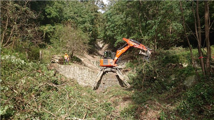 Im Oktober wurden die Arbeiten in die tieferen Lagen verlegt: So wurde etwa der Gratscherbach ausgeholzt und Steinblöcke zerkleinert und gesprengt und im Bachbett liegendes Material beseitigt. Die Bauarbeiter befreien mehrere Bachläufe von der Vegetation, setzen Ufermauern instand und nehmen allgemeine kleinere Sanierungsarbeiten an Schutzbauwerken vor.