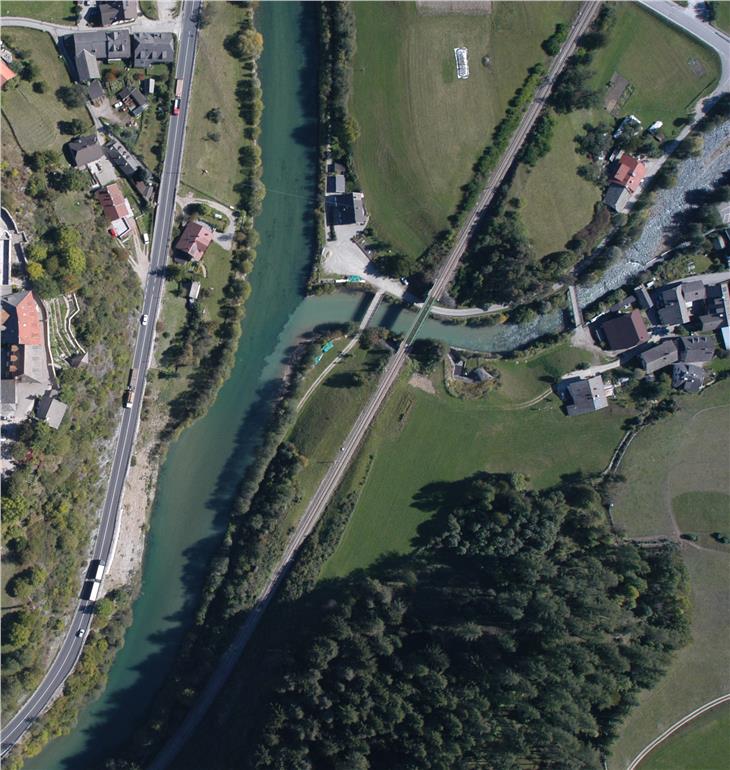 - RIENZact, Flussraummanagementplan für den Hochwasserschutz und die nachhaltige Gestaltung und Entwicklung des Flussraumes; im Bild die Mündung der Gader in die Rienz (Foto: Amt Wildbachverbauung Ost) [JPG 109 KB]